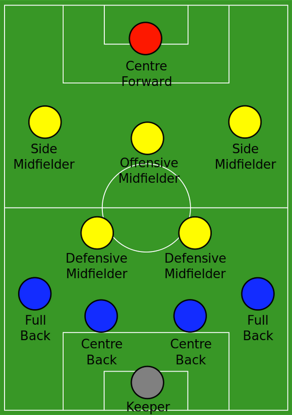 - Goalkeeper: The only player allowed to use their hands. Their job is to stop shots on goal.